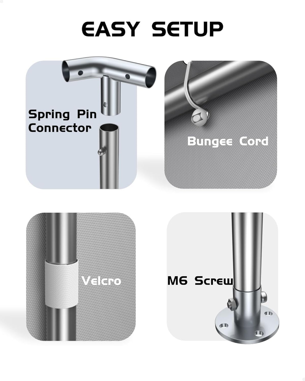 - 【Rust-Resistant Steel Frame】All the frames are constructed with 21 Ga. and 18 Ga. reinforced galvanized steel poles; Coated with anti-rust powder to extend the service life