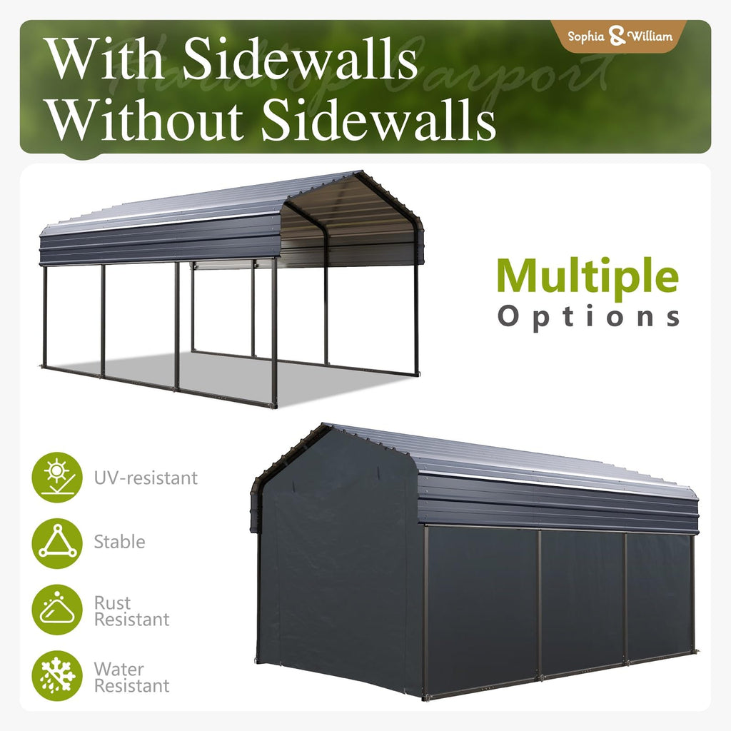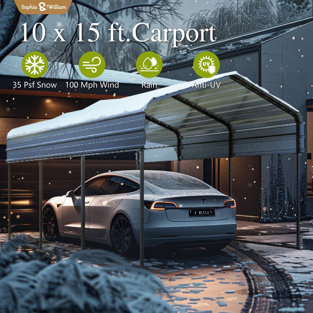 - Carport Display Dimension: 10'W x 15'D x 8.3'H. Mail-order level packing that has passed the professional fall test and can better protect the product from damage. All Sophia & William purchased products can be replaced of missing and damage parts in 365 days as standard