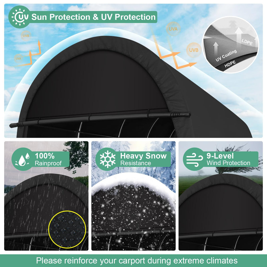 • 【Removable Double-Zipper Doors & Easy Entry Portable Carport】Featuring double zippers and buckles, the doors of our portable shed can be easily removed or rolled up for convenient entry and exit, improved visibility, and improved air circulation. These outdoor shed doors are located at both the front and back of our carport canopy, allowing for quick and secure access to your car or a fast exit when needed.