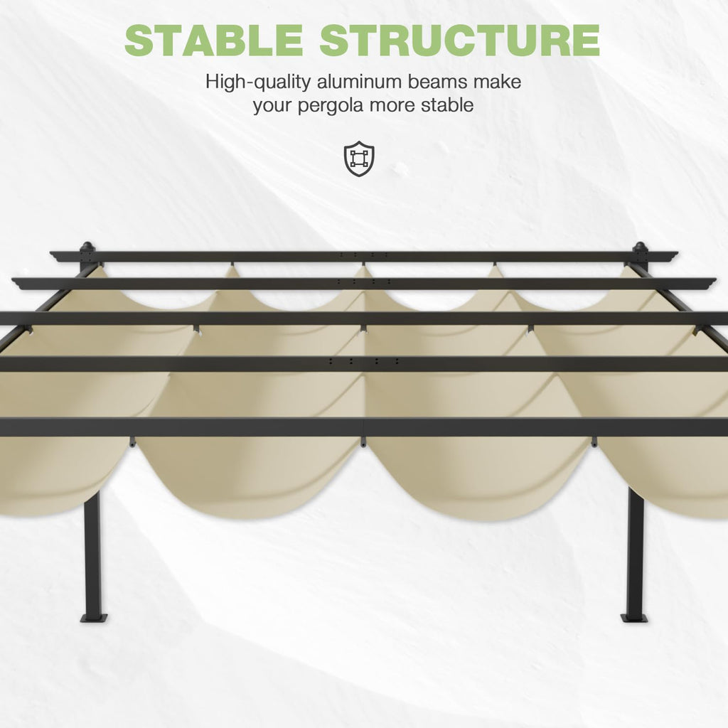 - 【VERSATILE AND SPACIOUS】This large-sized retractable pergola canopy provides plenty of space, it is perfect for hosting parties on a patio or other outdoor area, and it can also provide stable support for climbing plants. You can enjoy the scenic surroundings and relax under this pergola, which is definitely a perfect addition to your outdoor living.