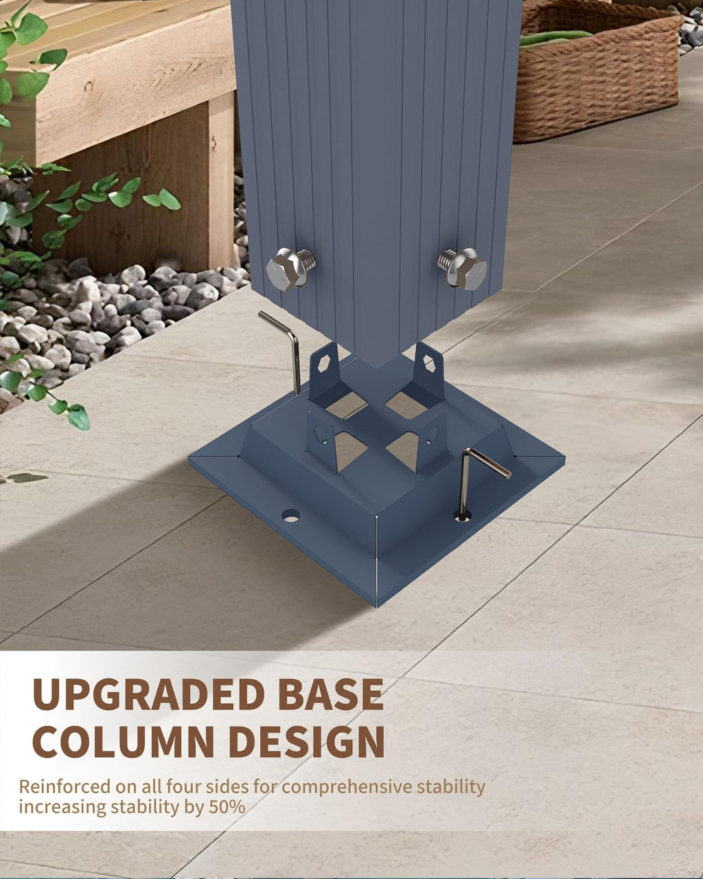 - 【4-Side Anchored Stability】Unlike standard bases with only 2-side support, our metal pergola features a 4-side anchored base for unshakable stability. Even in windy conditions, it stays firmly grounded, ensuring safety and peace of mind