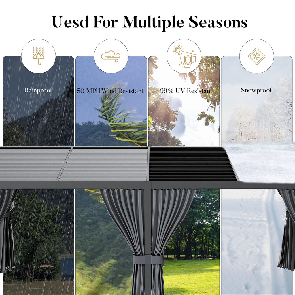 • 🎨【Flexible Shade Control】Outdoor pergola features four independently adjustable roof panels that let you fine-tune light, airflow, and shade for all-day comfort.