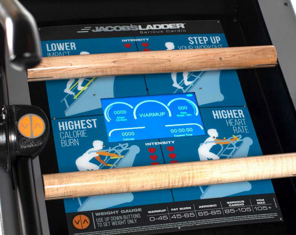 The Jacobs Ladder X is an intense Ladder Climbing Exercise Machine designed specifically for training fitness enthusiasts, athletes and professionals. The Jacobs Ladder X is self-powered and the redesigned display gives a dashboard look at workout intensity levels based on speed. Jacobs Ladder is designed so the higher you climb, the faster the rungs go.