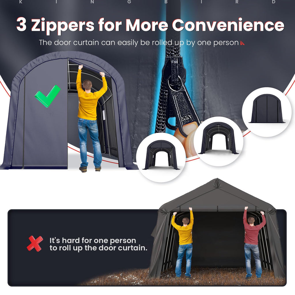 - 【Three-Zipper Door & Widen and Heighten】The carport adopts Three-Zipper Door design, which makes the available door height increased to 8.2 FT, suitable for all kinds of SUV, Full-size Trucks and Household.