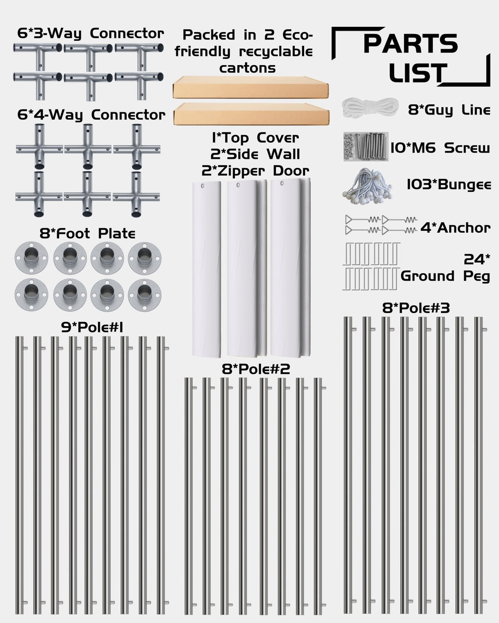 - 【Product Dimensions】Length x Width x Height - 20' x 10' x 11', suitable for parking pickups, boats, sedans, and SUVs, and can also be used as an outdoor storage shed.
