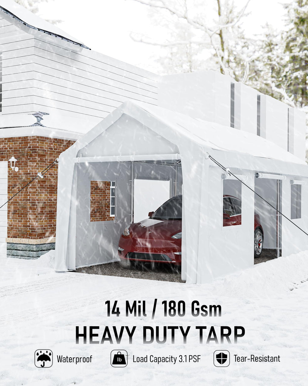 - 【Design and Installation】The KYBOLT heavy-duty carport features roll-up zipper doors and mesh windows on the front, back, left, and right sides. It comes in two box packages with a detailed instruction manual and is designed for quick installation in just 2 hours.