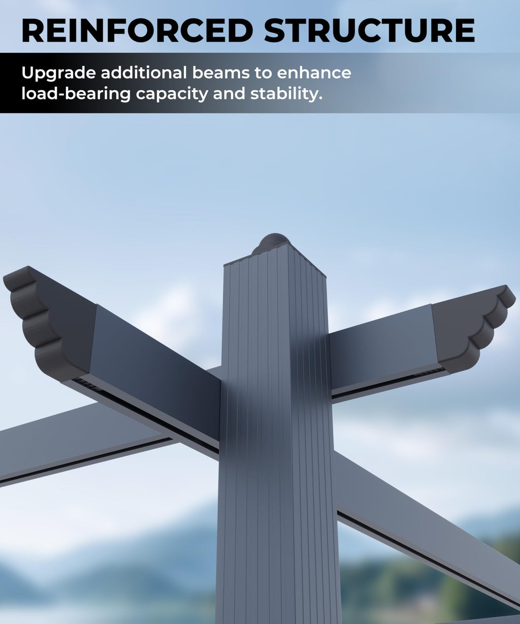 - 【Ultra-Stable 4-Sided Reinforced Base】: Unlike traditional pergolas, our upgraded design includes a four-sided reinforced base for maximum stability. Say goodbye to wobbling and enjoy a secure, sturdy structure that stands firm in all weather conditions.