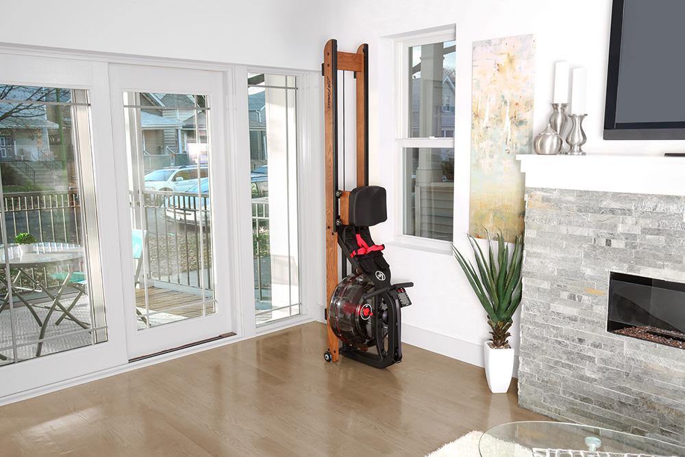 Easy to move and has a small footprint to fit in any space. The rower is less than 7-feet (213 cm) tall when stored upright.