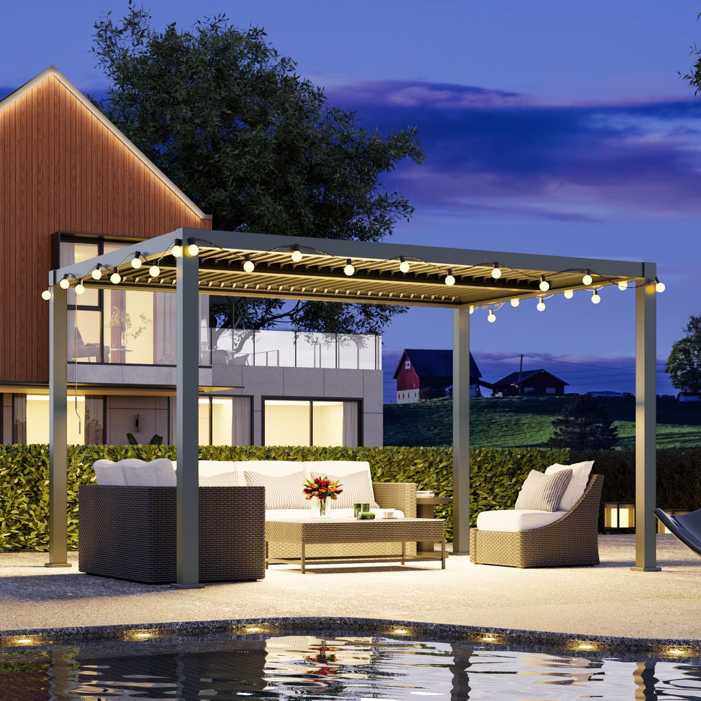 • 【Versatile Adjustable Roofs】- Featuring two independently adjustable aluminum roofs, our pergola allows you to easily control the amount of sunlight and shade over an area of up to 192 square feet. Adjust the roof from 0°to 90° to enjoy the perfect balance of sun and shelter, suitable for all your outdoor gatherings, be it parties, BBQs, or quiet family time.