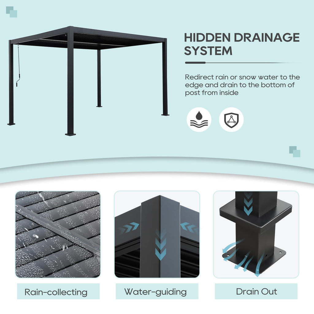 - 【Hidden Drainage System】Say goodbye to water buildup concerns! Our patio pergola features a built-in gutter system along the roof, directing rainwater to the columns and preventing water accumulation. You can relax underneath without worrying about rainy or snowy days.