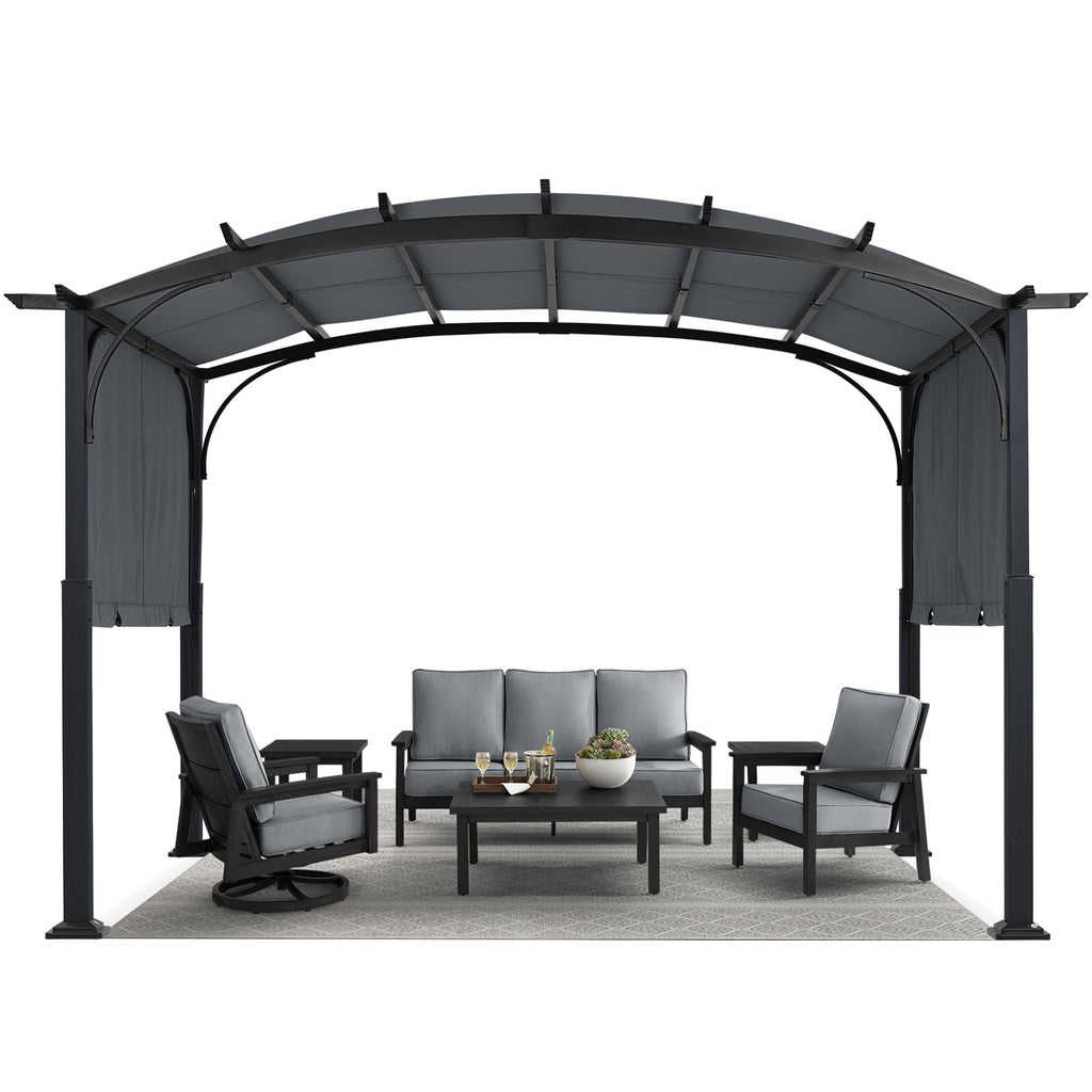 MASTERCANOPY 10x12ft Outdoor Retractable Pergola with Sun Shade Canopy Patio Metal Garden Pergola,Dark Grey
