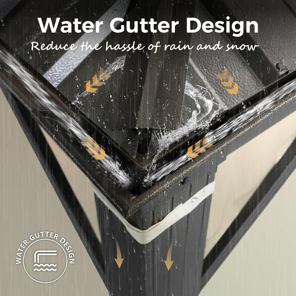 • 【Iron Double Roof】: The pavilion adopts a double roof to facilitate ventilation, which can achieve the effect of cooling under the pavilion and create a comfortable space. This product adopts iron double-layer roof structure, with durable, strong, rust prevention and other characteristics, enough to resist the rainstorm and blizzard weather, to avoid direct UV damage to your skin.