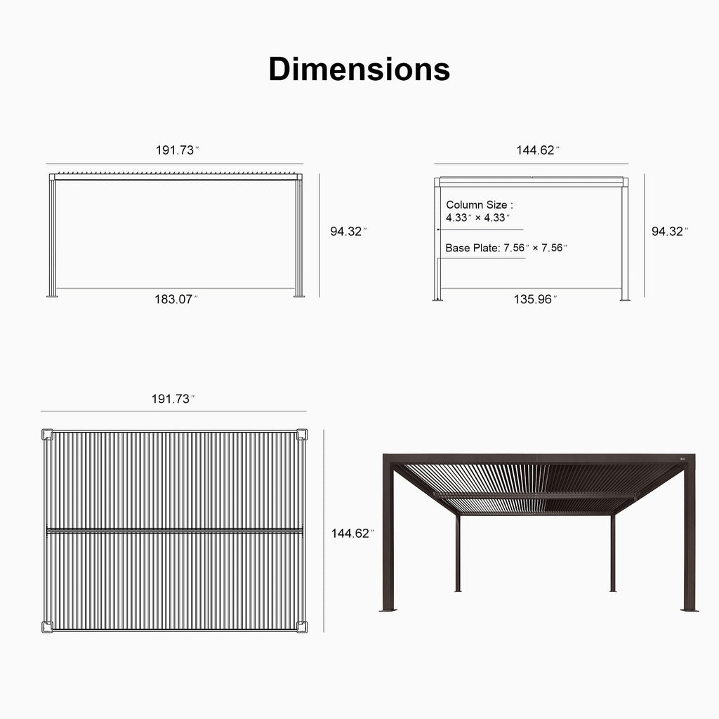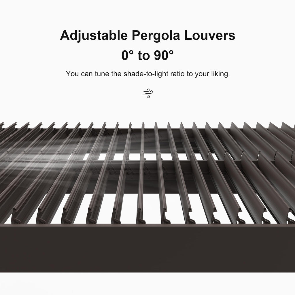 - 0° to 90° Adjustable Pergola Louvers: Unique design of two independent adjustable roofs customizes the shade up to 192 square feet, allowing you to do different things in two adjacent areas.