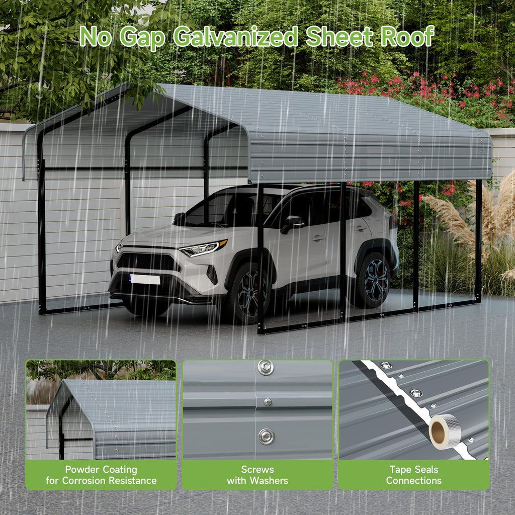 - Stable Structure: Our carport features powder-coated steel frames for rust resistance and durability, and also configures 8 ground stakes for added stability in harsh weather.