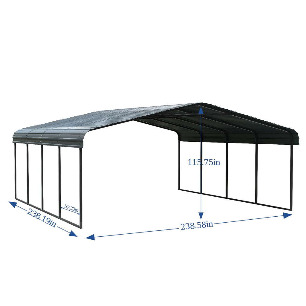 Details: Upgrade your outdoor protection and storage solutions with our heavy - duty metal carport. Engineered with high - quality, high - strength steel, this carport is designed to endure extreme weather conditions, such as strong winds, heavy snow, and rain, offering far - superior durability compared to regular car ports. It's the ultimate safeguard for your cars, RVs, and other valuable possessions. This metal carport is not just for parking vehicles. It doubles as a versatile outdoor canopy, perfect for hosting outdoor gatherings, barbecues, or simply providing shade on sunny days. The spacious interior can also be used as an outdoor storage area, similar to sheds, where you can neatly organize gardening tools, bicycles, and other outdoor items. In a pinch, it can even serve as a substitute for a garage, making it a truly multi - functional addition to your property. Installing our carport is a hassle - free experience. With comprehensive instructions and all the necessary hardware included, you can assemble it on your own without the need for professional help or specialized tools. It's much simpler and quicker to set up than a plastic shed or a garden shed, getting your outdoor space ready for use in no time. The carport's well - thought - out structure provides a large, unobstructed interior space. It can comfortably accommodate various vehicle types, from sedans and SUVs to small RVs, ensuring easy access for parking and retrieval. Moreover, you can customize the interior layout according to your storage needs, adding flexibility to its usage. In addition to its practical functions, our metal carport also enhances the aesthetic appeal of your outdoor area. Its simple yet elegant design seamlessly blends with any outdoor setting, whether it's adjacent to a garden shed or in the middle of your lawn. Unlike a car tent, it offers long - lasting stability and beauty, making it a worthwhile investment for your home.