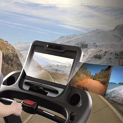 Interactive workouts featuring 10 stunning sceneries via new clear touch display. Example - Along the Beach - With the soft sand beneath your feet and the turquoise waters by your side, you may never want to stop running.