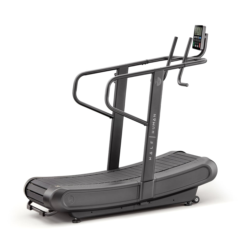 Non-motorised and fully powered by you, this manual treadmill is not only environmentally friendly, but also has lower running and servicing costs. With no electricity needed, you don't have to worry about tangled cables and plug sockets. Simply place your treadmill anywhere you want and start running towards your goals. Offering solid build quality, premium components, an impressive maximum user weight of 150kg (331lbs) and commercial durability, the Half Human curved treadmill is made to perform, go beyond your limits, as well as to meet and exceed your needs.