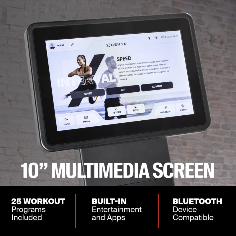 • Pre-Built Programs: 25 Total Programs Quick Start, HRC, Classic, Intervals, User Programs, Vision Run, Fitness Tests