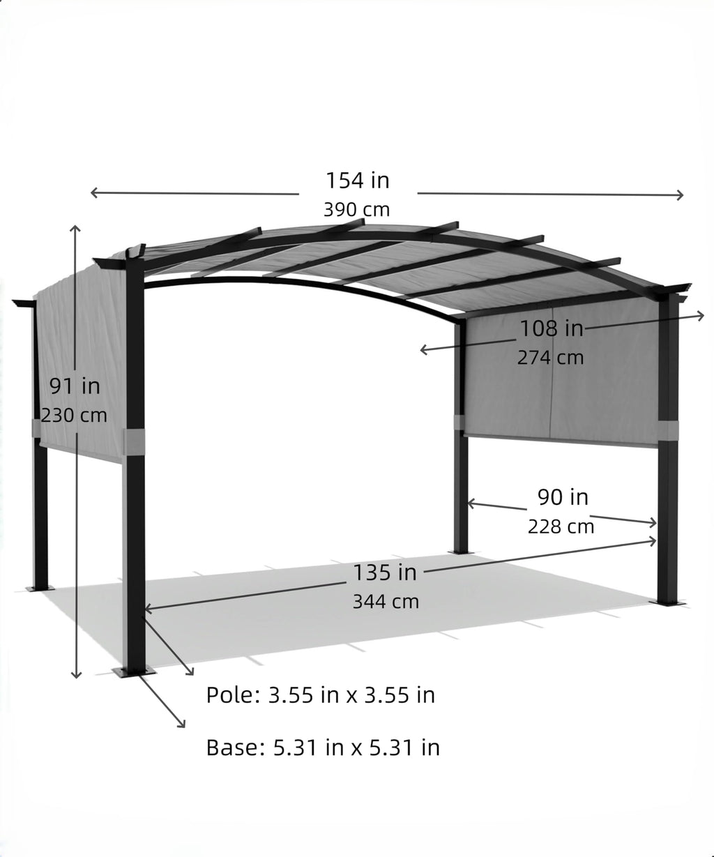- 【Size Information】 The dimensions of our arched metal pergola are: 9.01'x12.80'x7.55', with internal usable dimensions of 7.50'x11.29'x7.55'. Please measure your installation space before purchasing.