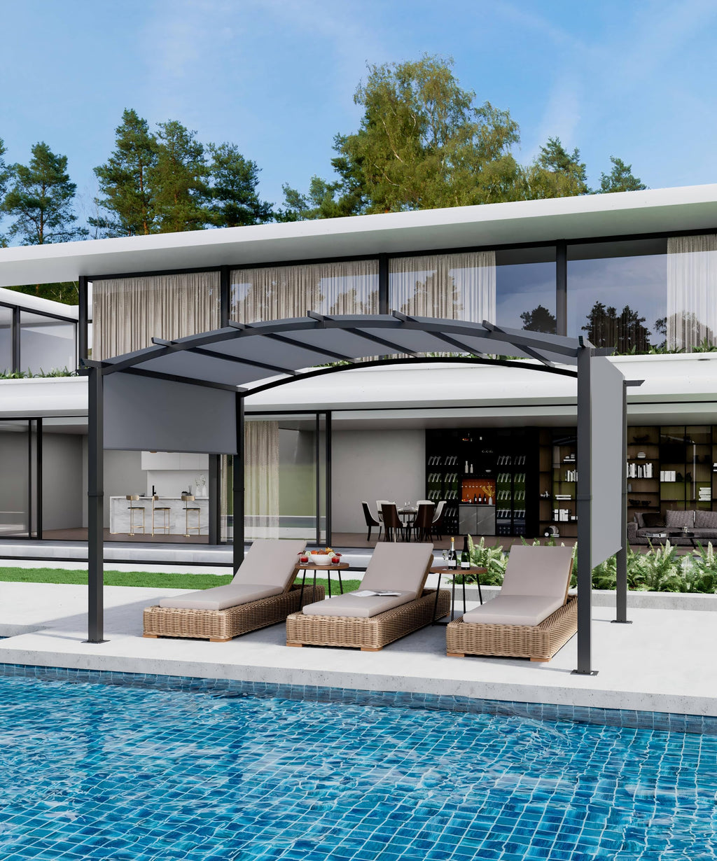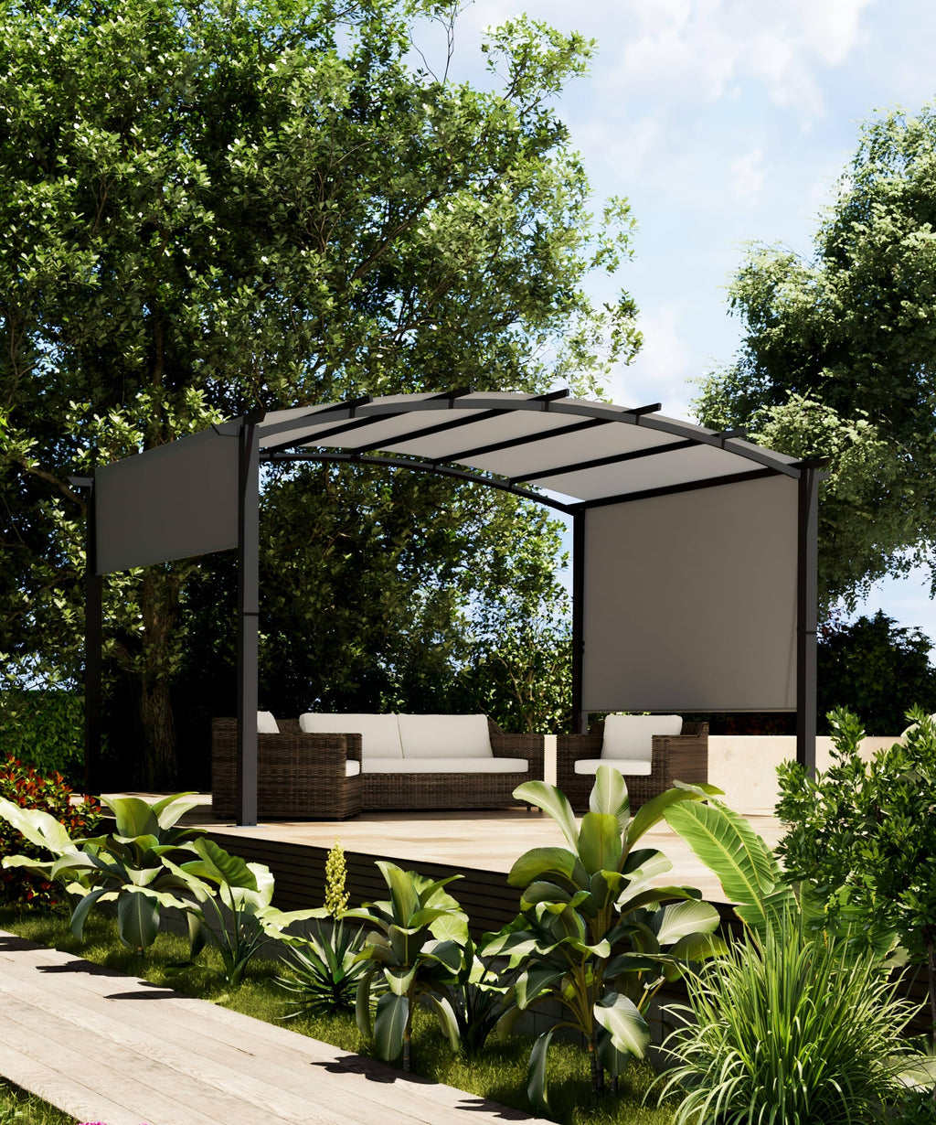 - 【Adjustable Canopy】 This pergola with retractable canopy is adjustable and provides UV protection and waterproofing. You can move the canopy according to your needs to achieve the best shade effect.
