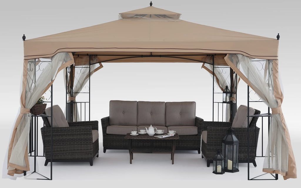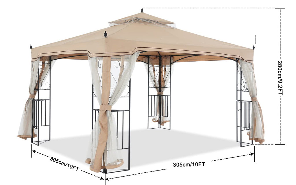 - ✅Practical Design: Double-layer roof promotes airflow while reducing wind pressure. mesh screens keep insects out without blocking breezes. PU coated 150D polyester canopy provides full waterproof protection and blocks 95% UV rays.