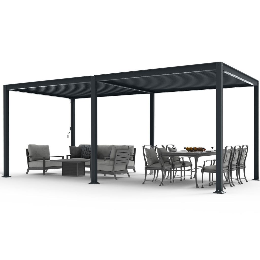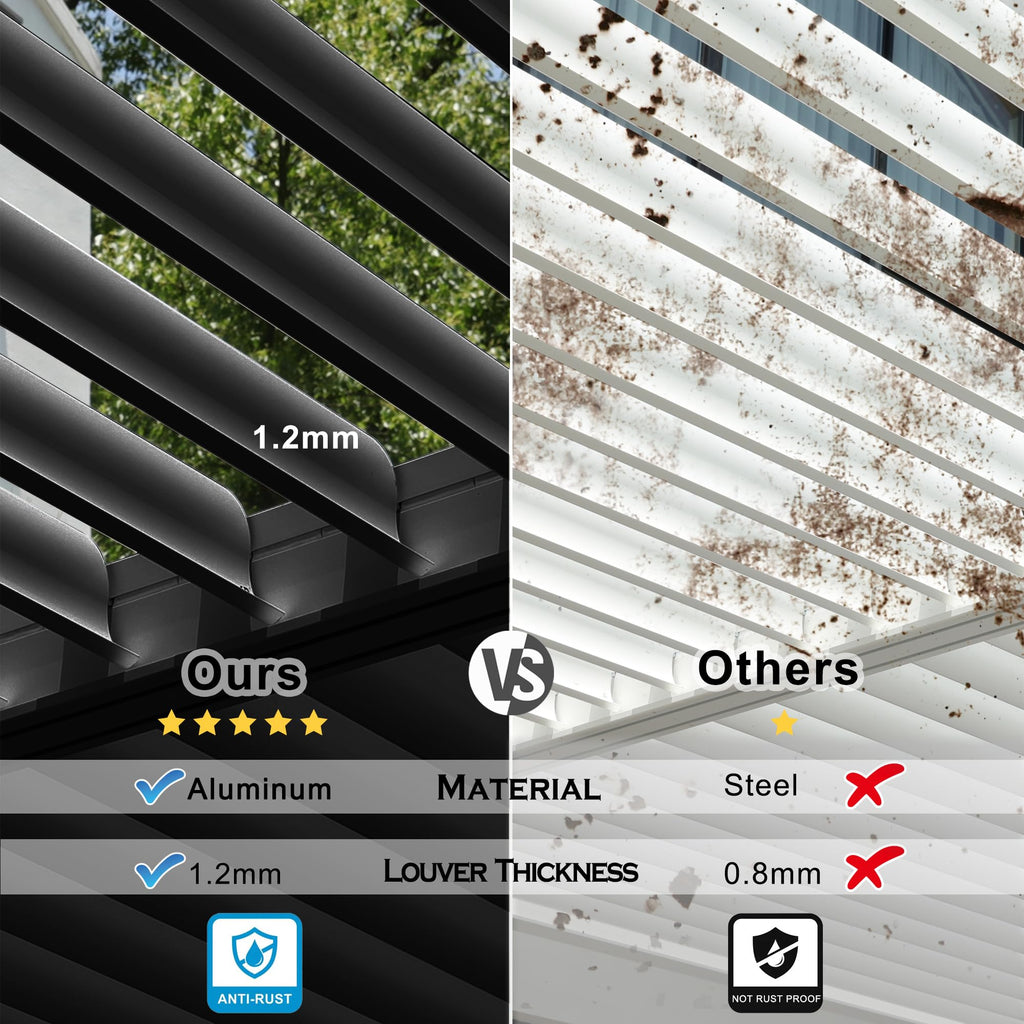 - 🔶Adjustable Aluminum Louvered Roof: The adjustable 0°-90° angle design of the louvers ensures that you get the most suitable sun exposure for your needs. With the hand crank you can easily choose to enjoy the sun, prevent direct sunlight, and escape from the rain.