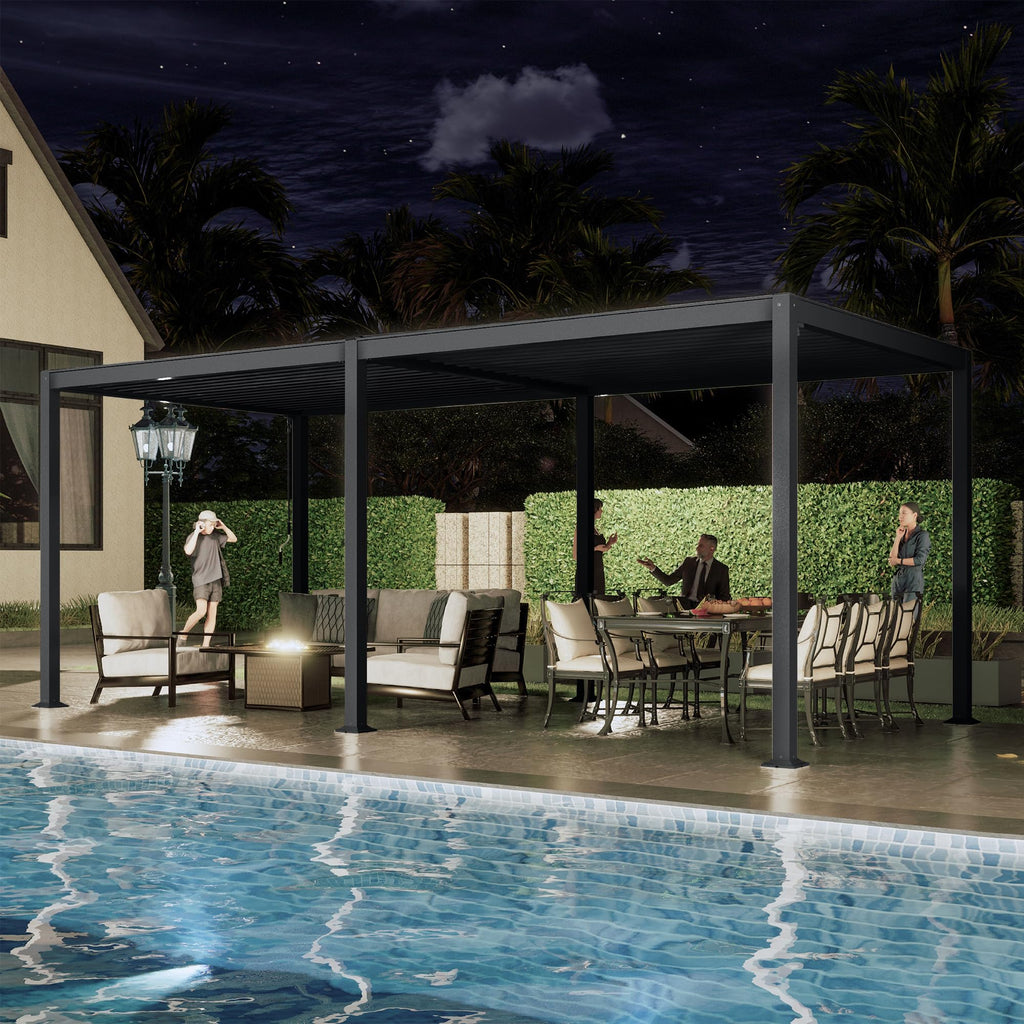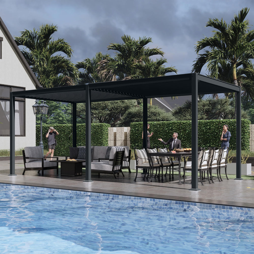 - 🔶Multi-Purpose Pergola: This louvered pergola is a simple and beautiful design that is suitable for a variety of occasions. Our 12' x 16' aluminum pergola provides 192 square feet of shade and can easily accommodate 8-10 family members, making it perfect for outdoor patios, gardens, backyards, gatherings, and everyday relaxation with family and friends.