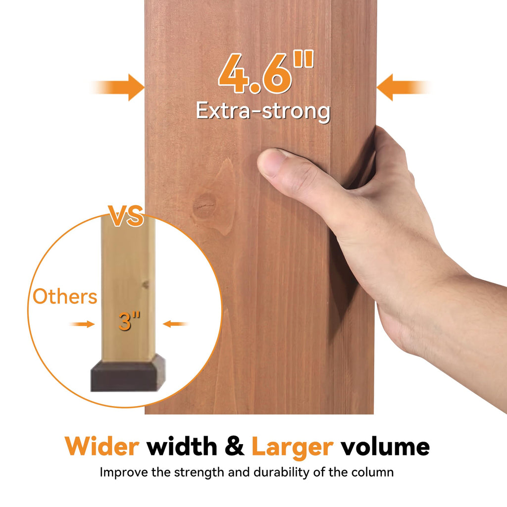 - [Sturdy & Stable Construction] The wooden gazebo is anchored by four extra-strong wooden posts with expansion bolts, ensuring steadfastness against strong winds and harsh weather. With expansion screws anchoring the gazebo into concrete or decking, our design ensures your shelter remains secure and stable, even in harsh weather conditions.