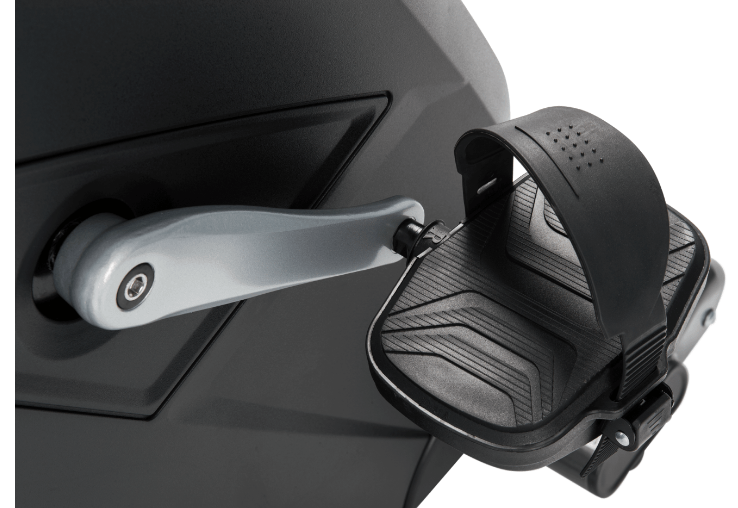 - Ratcheting pedals feature 2-degree inversion for comfortable foot placement.