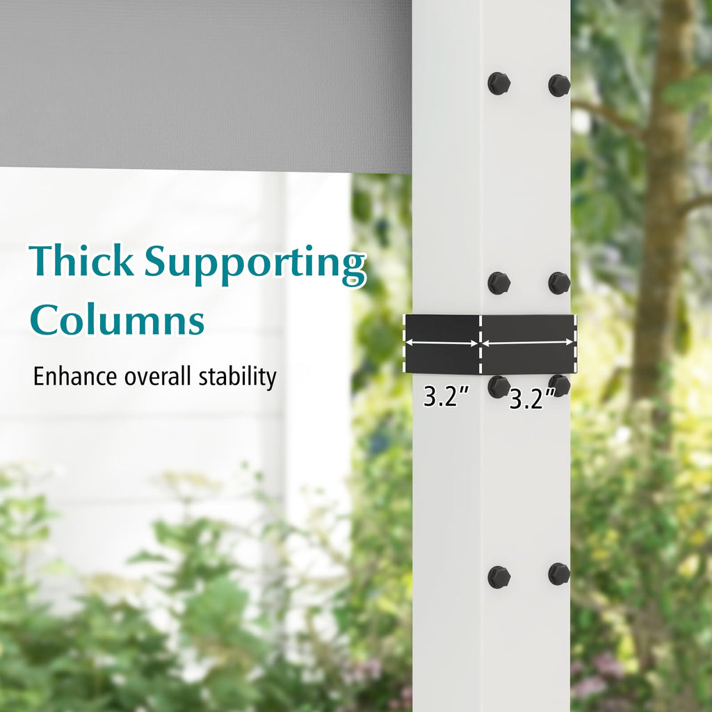 - Robust Aluminum Construction: This outdoor pergola is supported by a high-strength powder-coated aluminum frame, which is rustproof, sturdy, and built to last. Moreover, the thick supporting columns ensure a solid foundation, enhancing overall stability.
