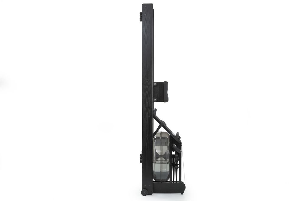 The WaterRower Shadow rowing machine with S4 Performance Monitor is constructed from solid Oak, finished with a Black Stain and Danish Oil.
