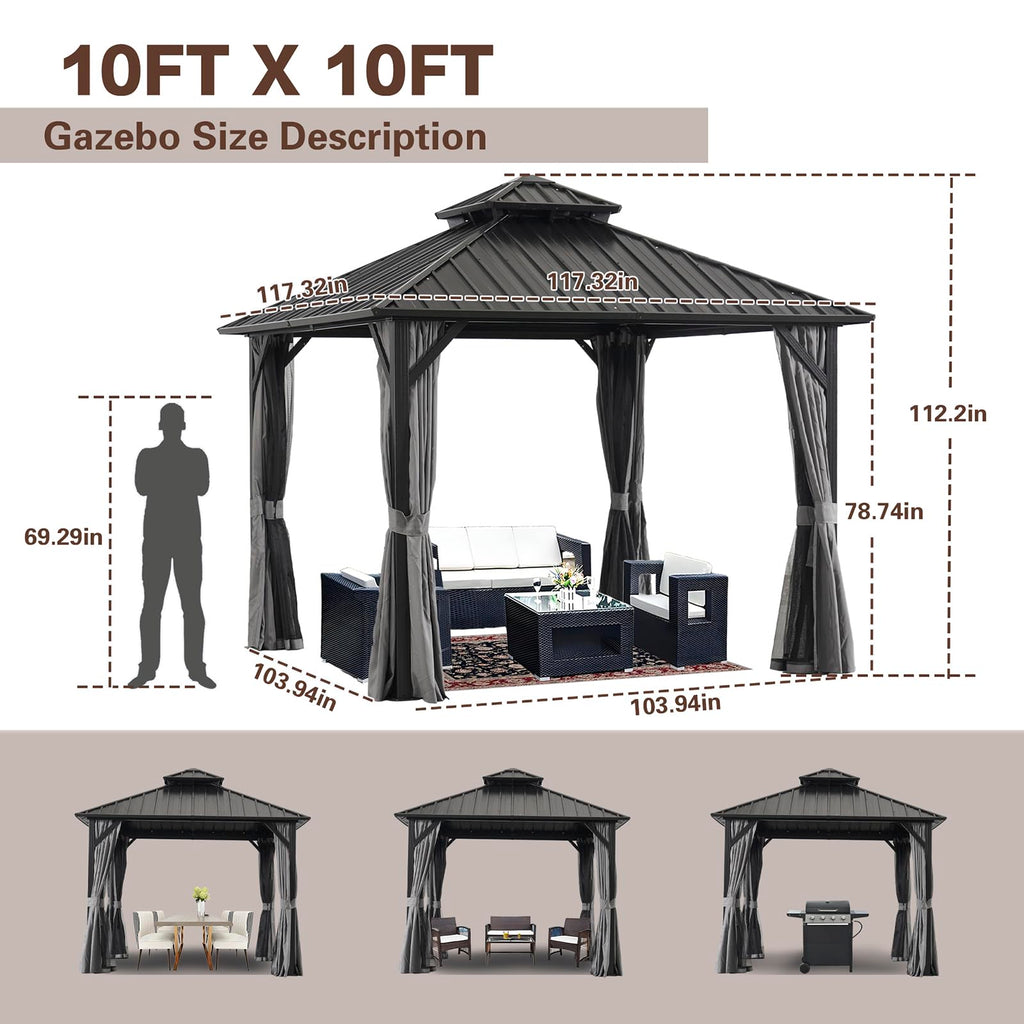 - 【Practical and Wide Usage】The product can be used for various purposes like hosting outdoor gatherings, setting up a small home office or creative studio, or simply as a quiet retreat for relaxation and contemplation, This hardtop gazebo is perfect for backyard, patio, lawn, courtyard, and other outdoor situations.