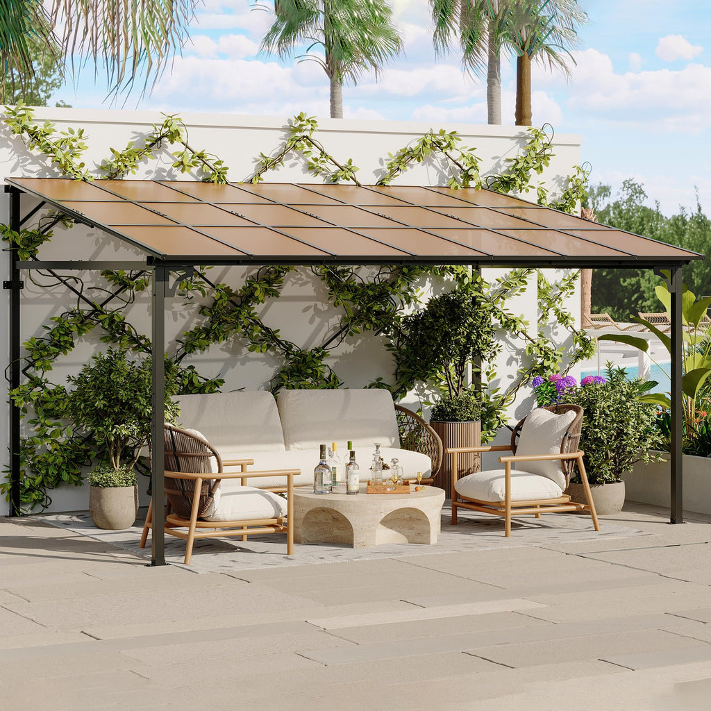 - Sloped Roof Design: The innovative wavy panels and grooves in this wall-mounted gazebo facilitate quick rainwater drainage, preventing water accumulation on the roof and ensuring a dry, comfortable outdoor environment