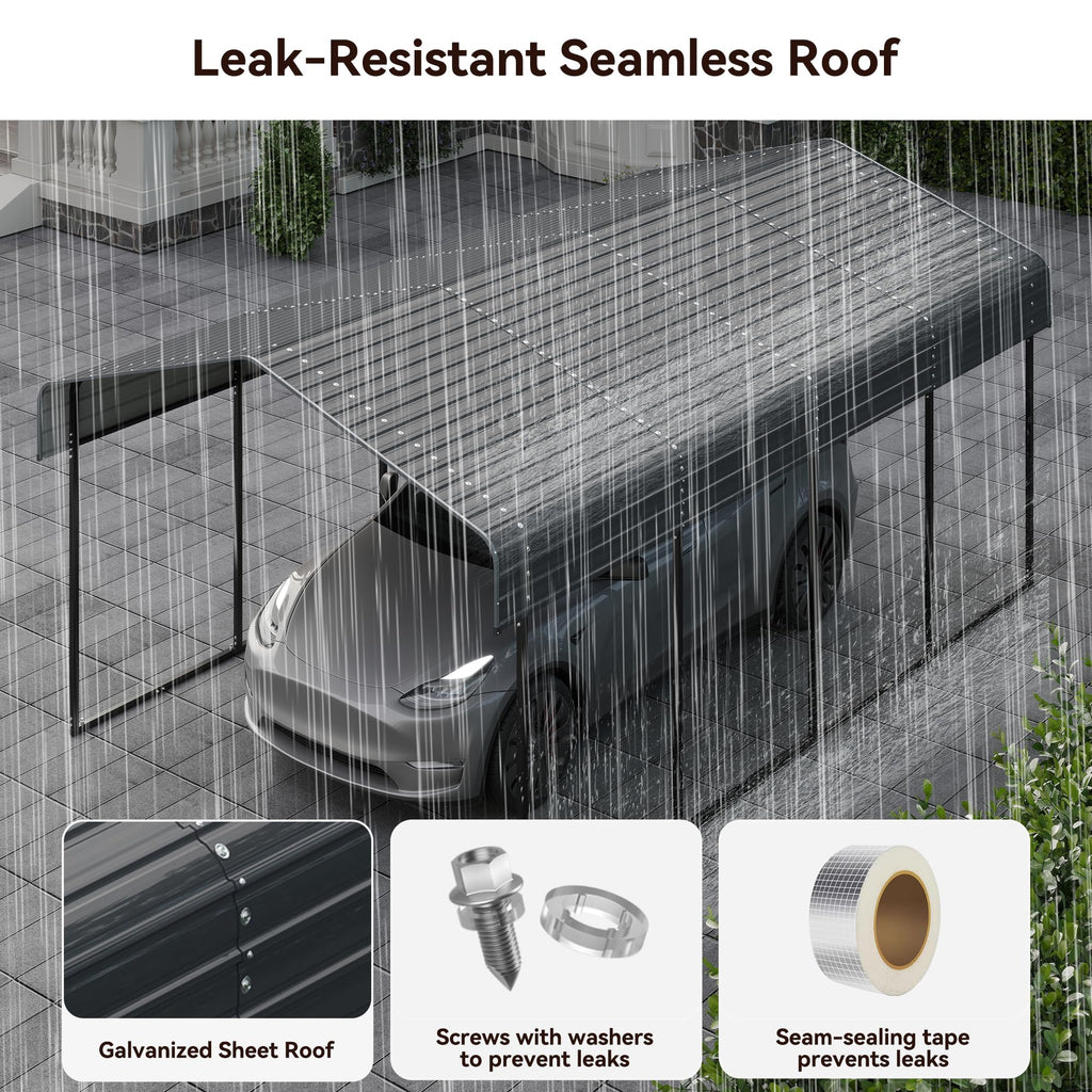 - Sturdy Structure: Made from 1.6" steel tubes with a powder-coated finish, this carport is not only sturdy and built to handle heavy loads, but also effectively resists UV rays, rain, and humidity. It is anti-rust, anti-corrosion, and scratch-resistant, maintaining its aesthetics and stability over time.