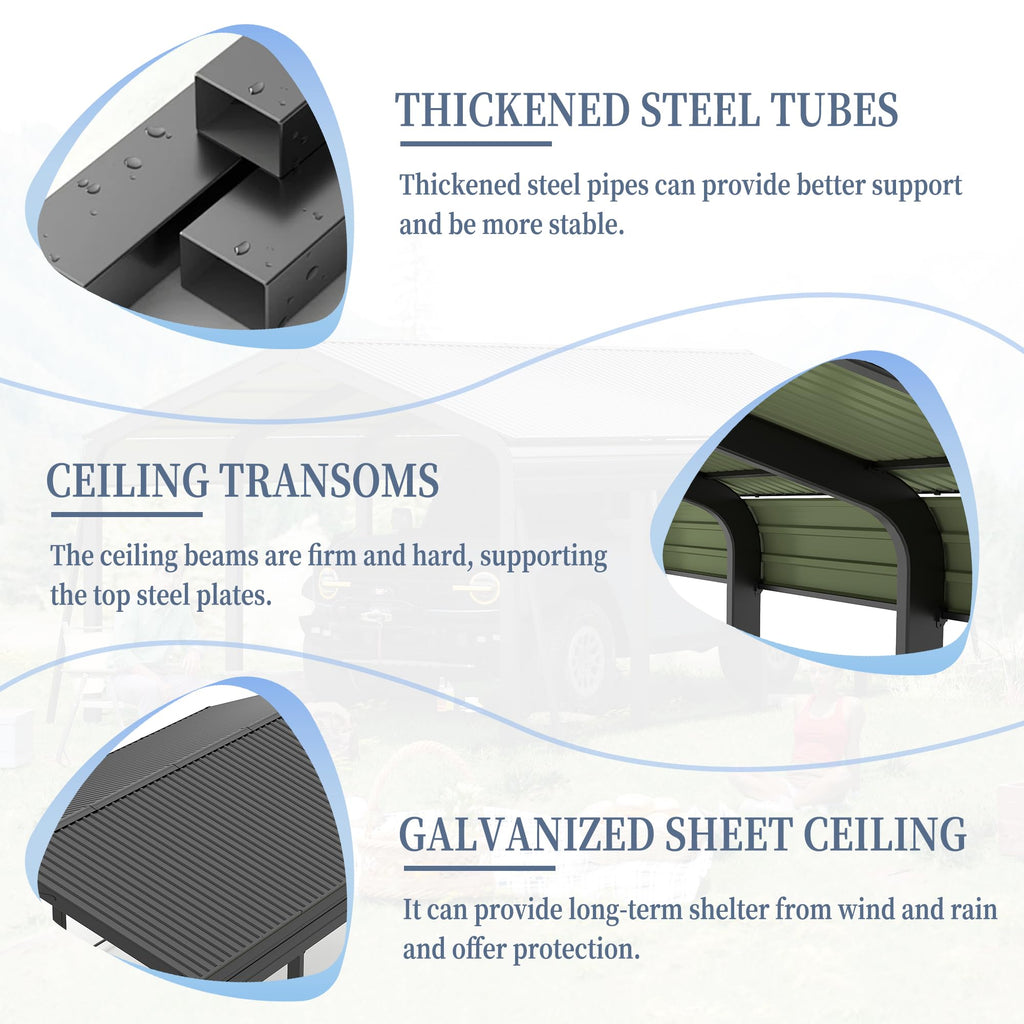• ✅ 𝐌𝐮𝐥𝐭𝐢-𝐔𝐬𝐞 𝐂𝐚𝐫 𝐒𝐡𝐞𝐥𝐭𝐞𝐫: Beyond a large car port, the carport canopy 12x20 heavy duty adapts into a shaded outdoor lounge, a convenient workspace, or extra storage for your tools and gear. Designed to blend seamlessly into any environment, it delivers ideal protection for vehicles and ample room for relaxation and hobbies.