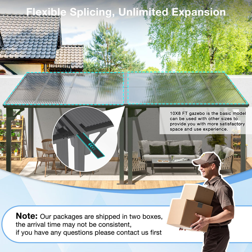 - [Practical and Versatile] Canopies, gazebos & pergolas perfect for backyards, decks and patios, this patio canopy is a versatile addition to any outdoor space. Whether you're hosting a party or just relaxing and unwinding, the hard top gazebo provides the perfect shaded area for all your outdoor needs