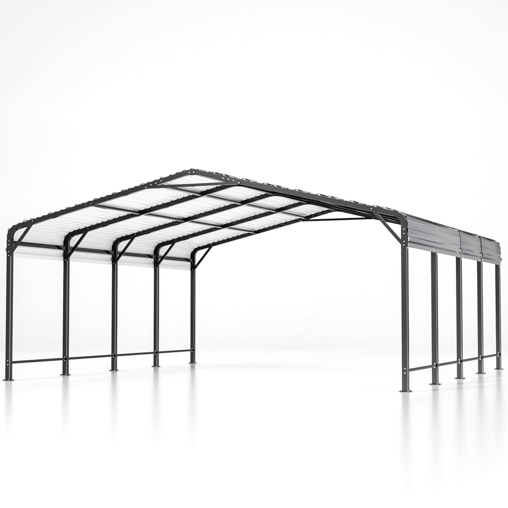 - [Enhanced structural support] 20x20 FT Heavy duty metal carport has five additional center canopy beams in addition to the regular diagonal support design. The frame is constructed from high-quality 2'' square steel tubing, meticulously reinforced at 11 key locations, ensuring unrivaled strength and resilience. With its superior structural integrity, this carport is built to withstand diverse climatic conditions.