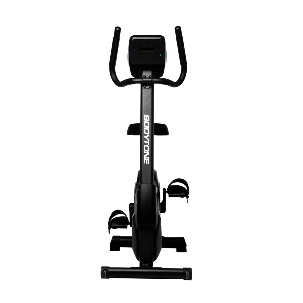 The Bodytone EVOU4 exercise bike brings the best cycling experience to your home. This upright bike uses the same engineering as the professional exercise bikes range. It features electronic regulation, heart rate sensors, 13 preset training programs, and a 16 kg inertial mass.