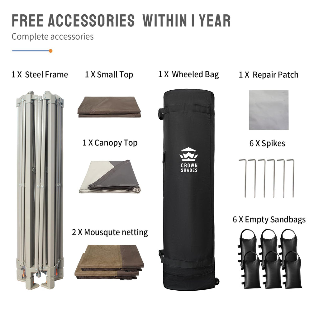 CROWN SHADES 12x12 Pop up Gazebo with Mosquito Nettings, Patented Center Lock 6-Sided Portable Gazebo, 300D Silver-Coated Fabric UV Resistant, Pop Up Canopy Tent for Patio, Party, Beige&Coffee