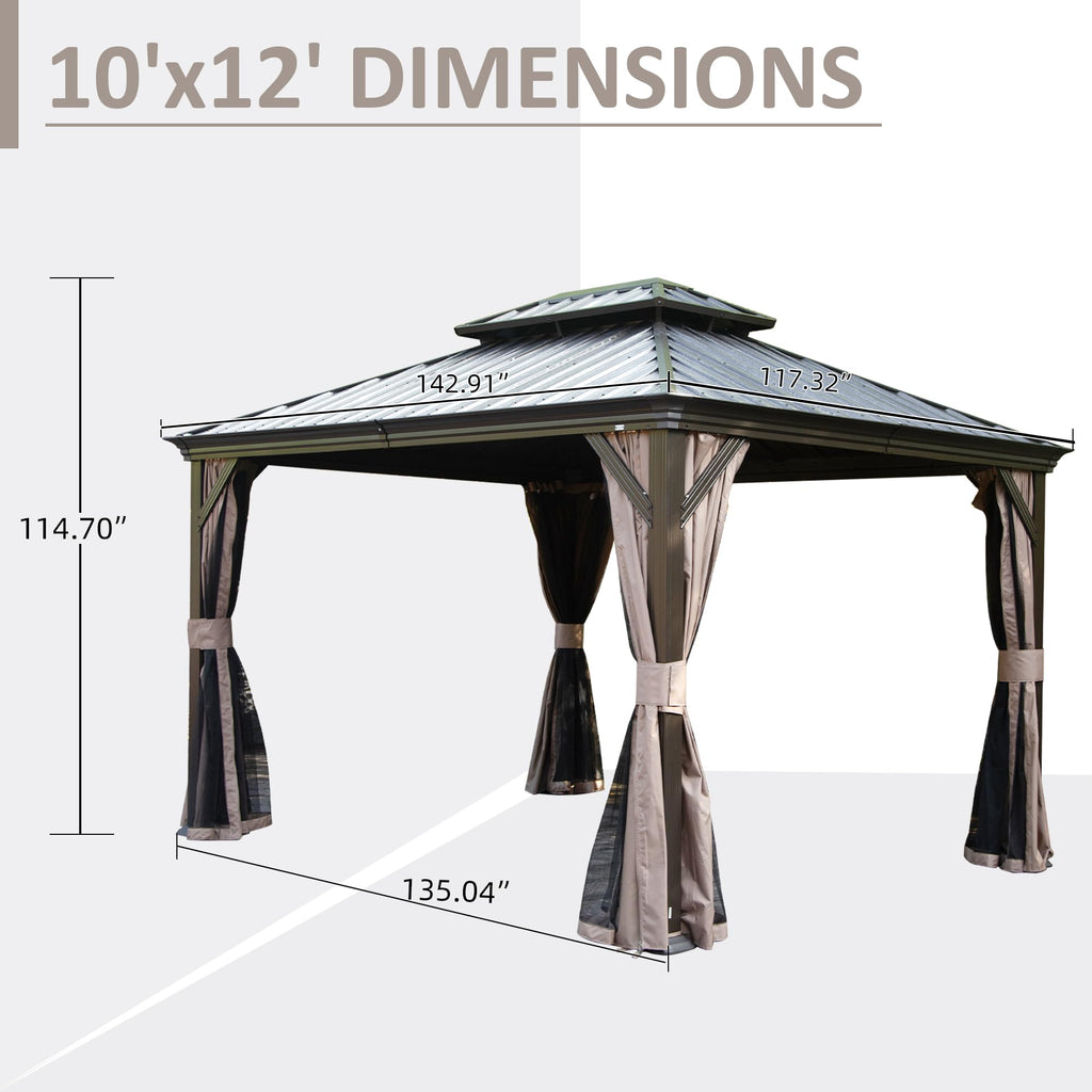 - [Perfect for Year-Round Outdoor Living] Transform your backyard or patio into a year-round retreat with the Domi 10x12FT hardtop gazebo. Ideal for morning coffee, family gatherings, barbecues, or a shaded escape, this large gazebo offers a stylish solution for outdoor living, providing ample space for relaxation and entertainment, no matter the season.