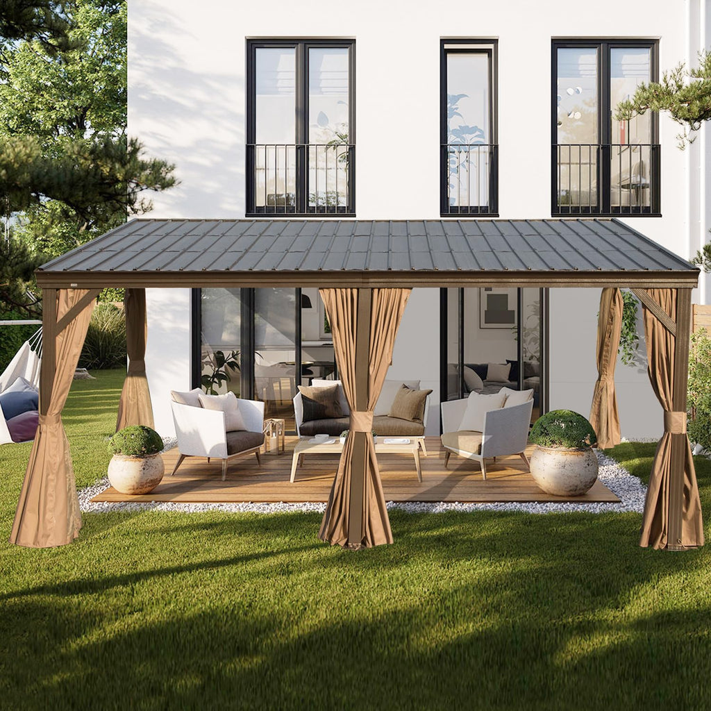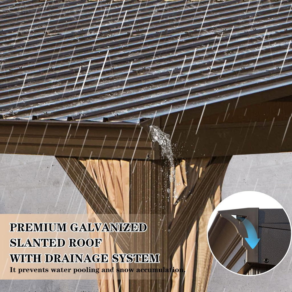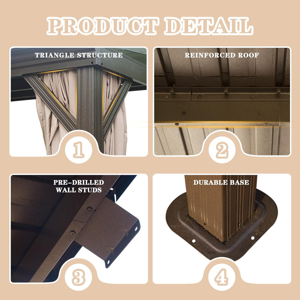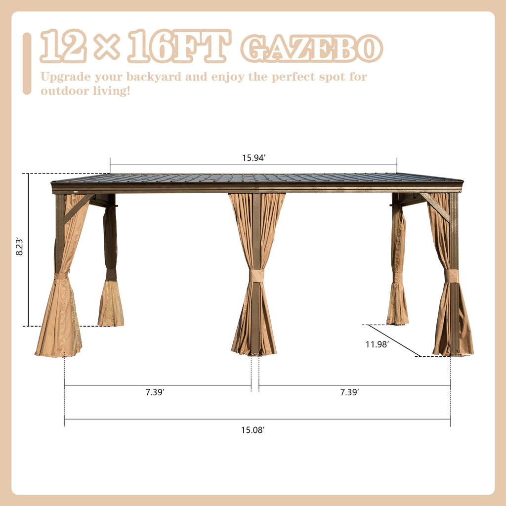 - Ultimate Privacy & Protection: Enjoy your personal oasis with the included curtains and mosquito netting. Made from premium polyester fabric with a PU coating, The 12x16 lean to hardtop gazebo delivers superior sun protection and waterproof capabilities. The mosquito netting allows for fresh airflow while effectively keeping pesky insects out.