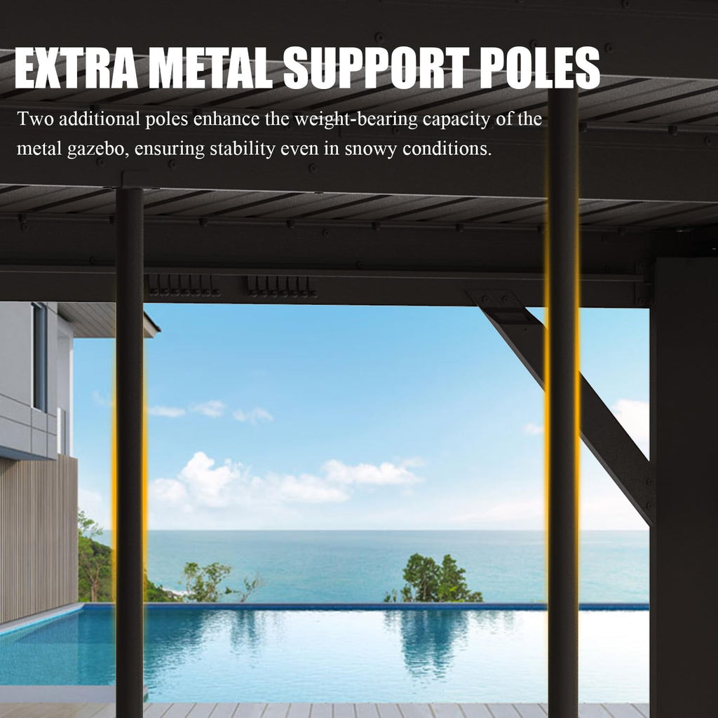 - Stylish Appearance: The sleek, modern design of the Domi outdoor hardtop gazebo enhances the elegance of any backyard, patio, or event space. Its eye-catching appearance serves as a stunning centerpiece that harmonizes with a variety of outdoor styles.