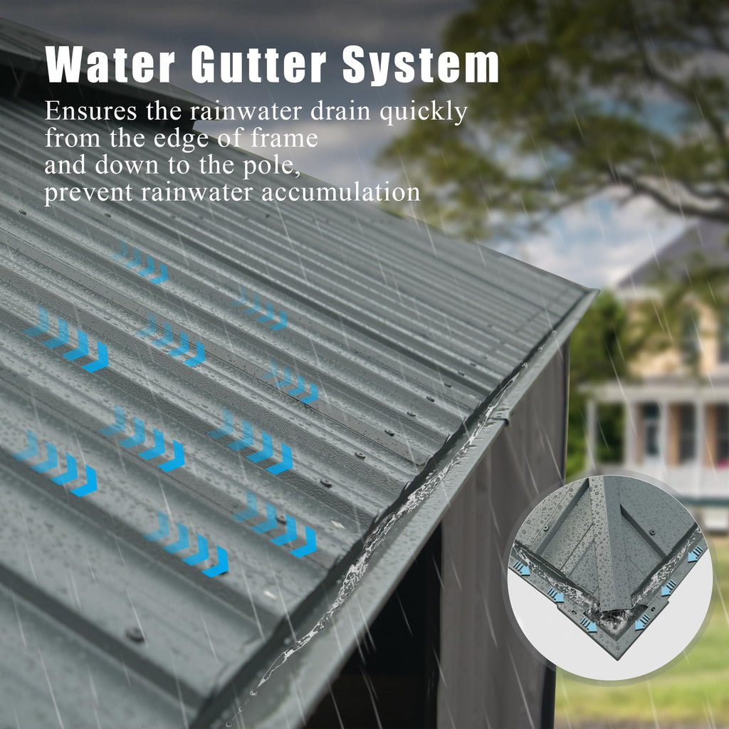 • Drainage System Design: Sloped roof designed to allow water to drain quickly, and the water gutter design of this domi gazebo ensures the rainwater drain quickly from the edge of frame and down to the pole,prevent rainwater accumulation