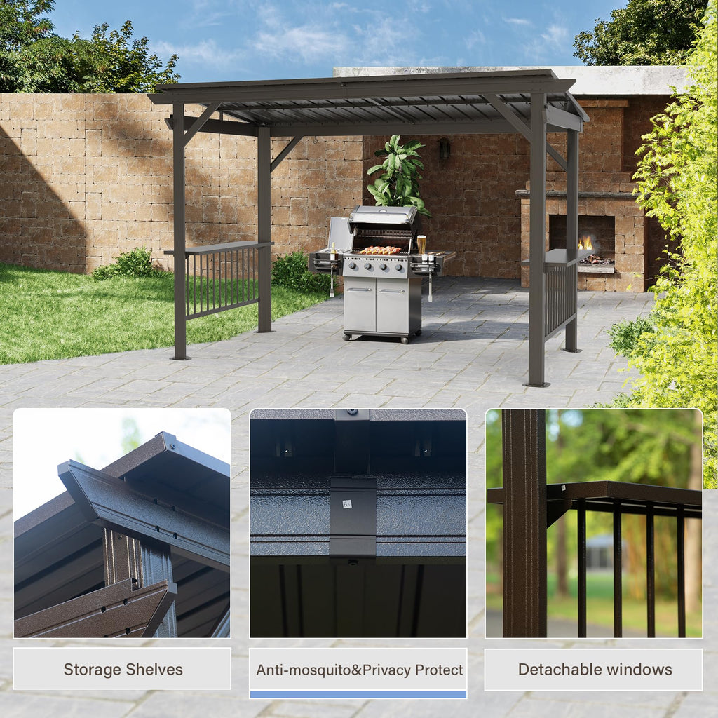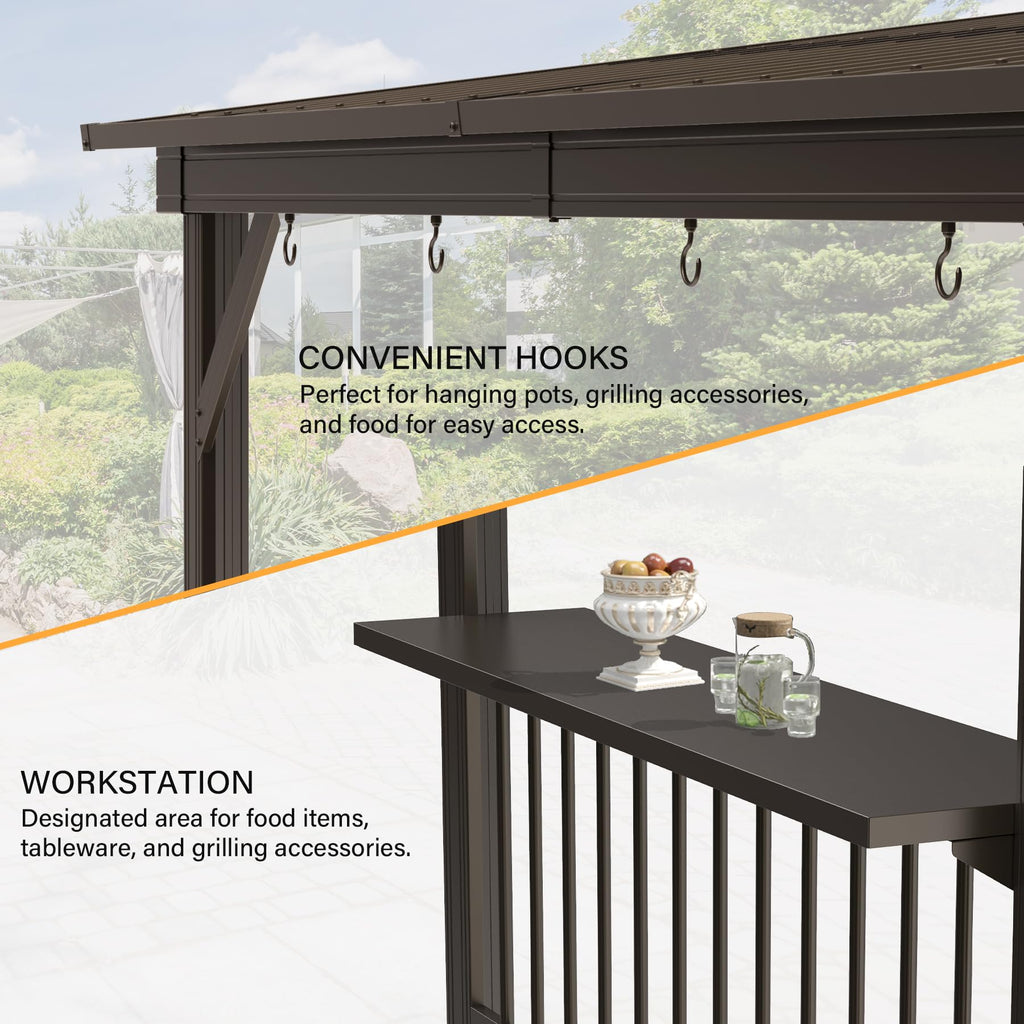 - 🌟 Convenient Side Shelves - Equipped with built-in side shelves, Domi hardtop gazebo provides ample space for preparing food and drinks, making your grilling experience more enjoyable. These shelves are perfect for storing your grilling accessories and condiments within easy reach.
