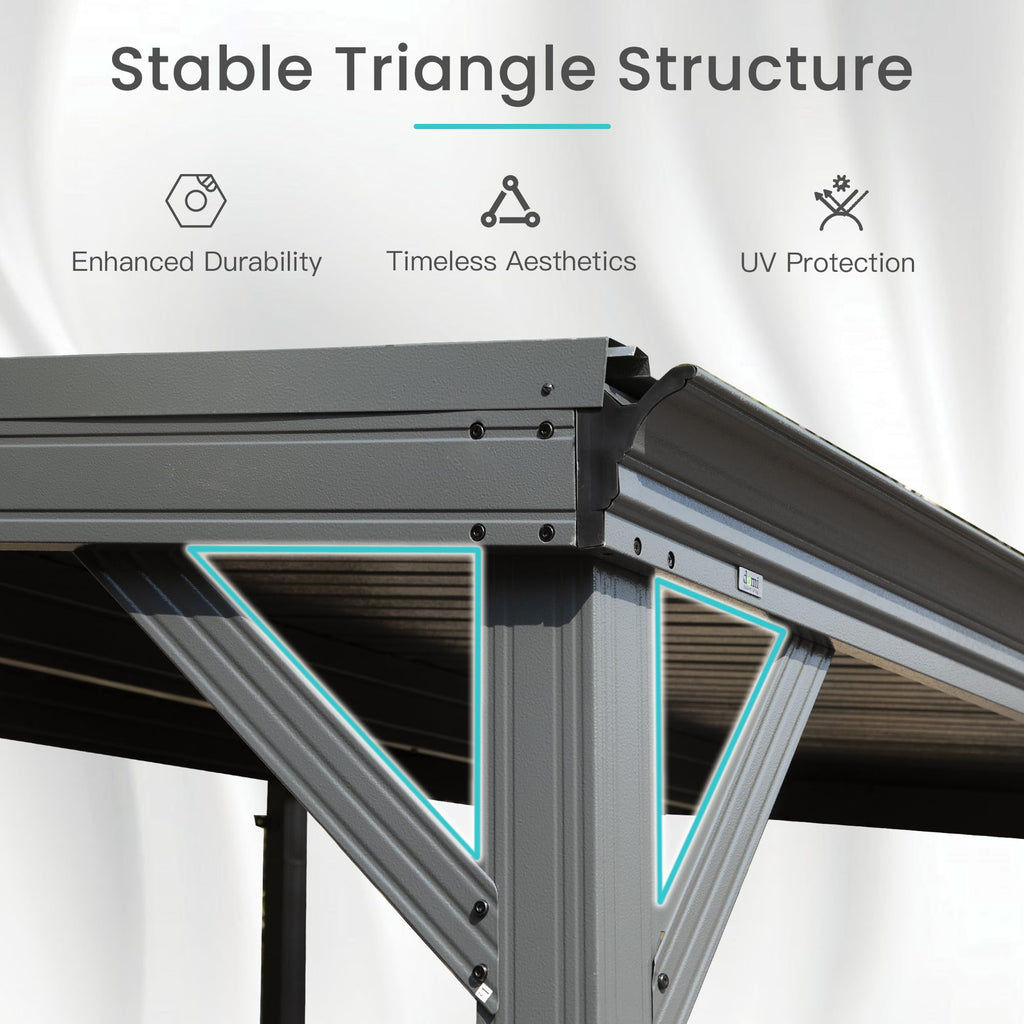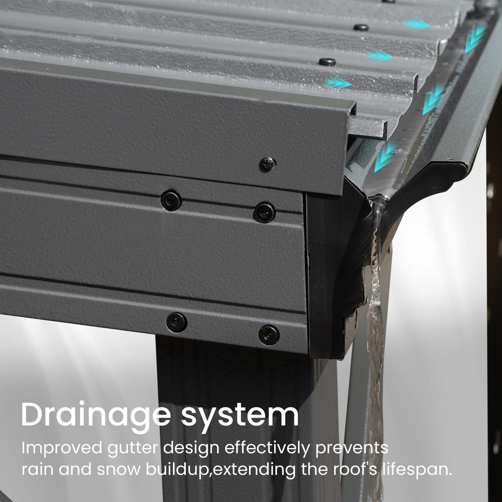 - Galvanized Steel Roof, Rustproof & Weatherproof: The galvanized steel panels offer lasting protection against the elements, ensuring years of maintenance-free shelter, adding modern style and unmatched durability that stands up to sun, snow, and rain