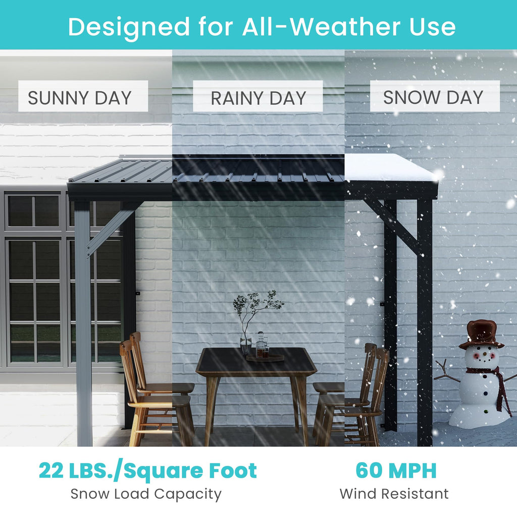 - 60MPH Wind & 22 lbs/Sq.Ft Snow Resistance: Built to handle tough weather with a steel roof and sturdy frame rated for high wind and snow load—ideal for year-round outdoor protection