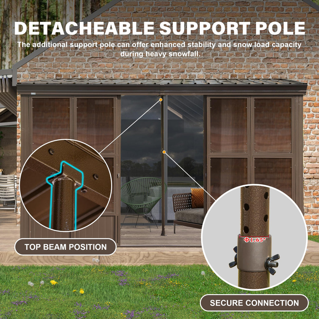 - Sturdy Aluminum Frame-Domi solarium gazebo is made of premium powder-coated aluminum that can withstand various weather conditions and prevent rust and corrosion, ensuring both aesthetic appeal and long-term outdoor use. Withstand snow pressure of up to 35 pounds per square foot and has a wind resistance rating of 60 miles per hour.