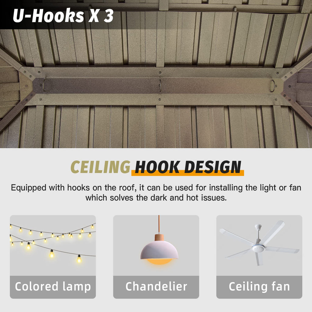 - [Great Supply Chain and Classic Design] A supply chain with over 20 years in the outdoor furniture industry crafts this classic hardtop gazebo design. This elegant gazebo has a great texture and an attractive design.