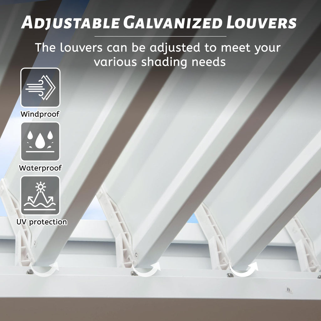 • Adjustable Louvered Roof- Easily control sunlight, ventilation, and rain protection with louvers that adjust from 0 to 90 degrees. Enjoy a comfortable, dry outdoor space no matter the weather with Domi pergola.