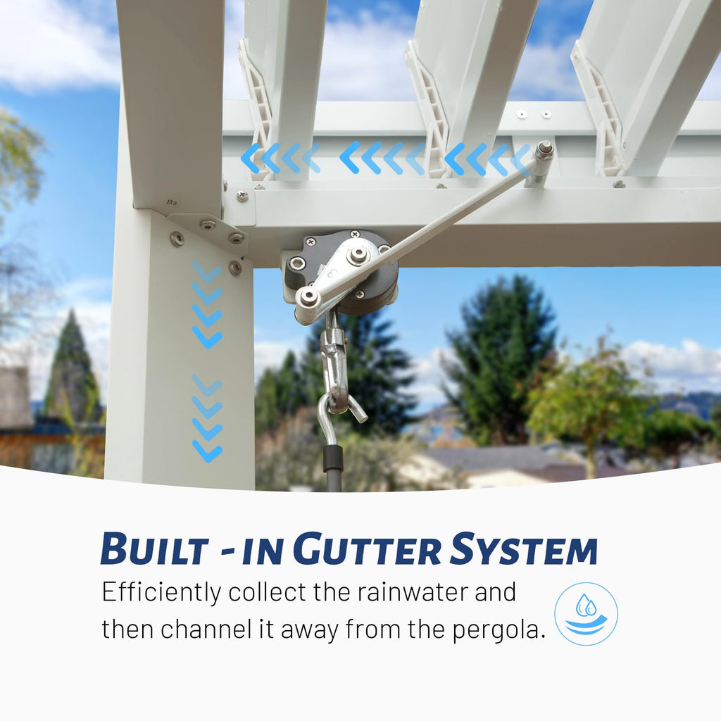 • Well Engineered Drainage System- Water flows through louver grooves to drainage channels at each corner, then down the columns to be discharged through base notches. This design of Domi aluminum pergola effectively prevents water accumulation, keeping your space dry and comfortable.
